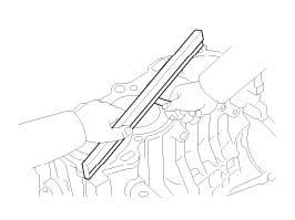 Using a precision straight edge and feeler gauge, measure the surface contacting the cylinder head gasket for warpage.