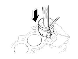 2) Install the ring compressor, check that the rings are securely in place, then position the piston in the cylinder, and tap it in using the wooden handle of a hammer.