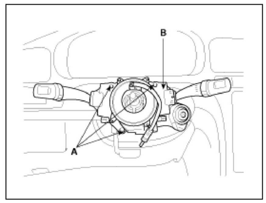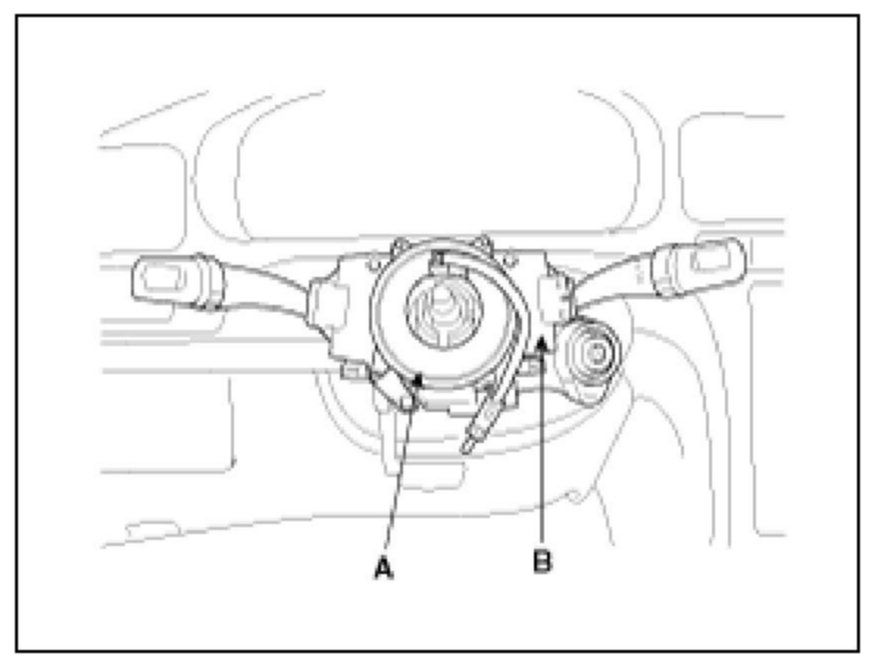 7. Remove the clock spring (A), then disconnect the connector(B) of multi-function switch.