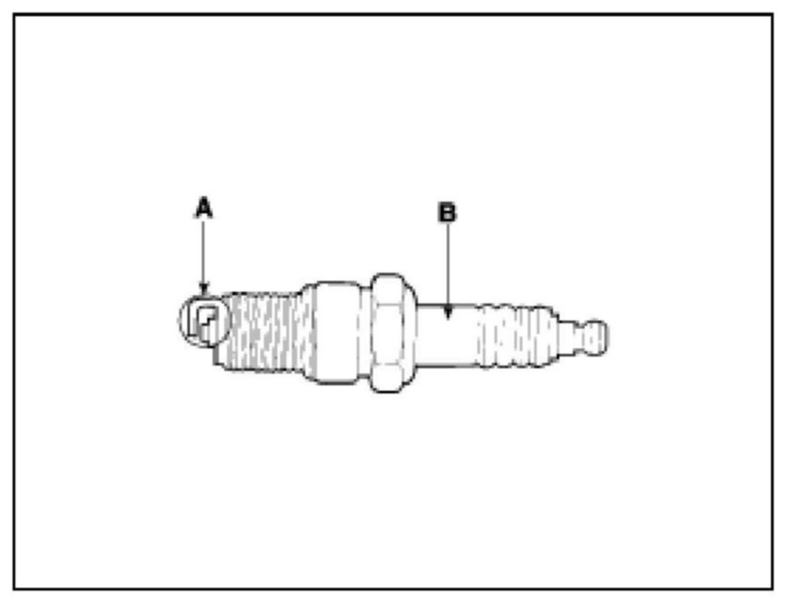 3. Inspect the electrodes (A) and ceramic insulator (B).