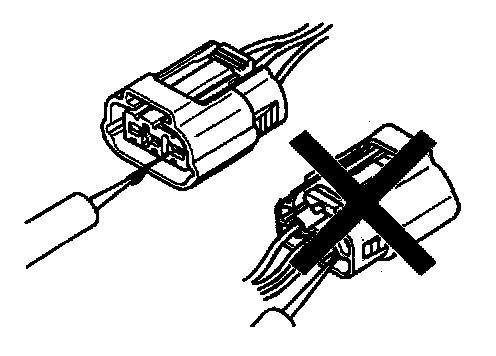 1. When a tester is used to check for continuity or to measure voltage, insert tester probe from wire harness side