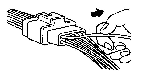 Insert a thin piece of metal from the terminal side of the connector, and then, with the terminal locking tab pressed down, pull the terminal out of the connector.