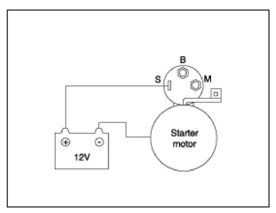 2. Connect a 12 V battery between S-terminal and the starter body.