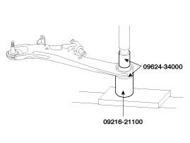 4. Install the new bushing on the lower arm using the Special Tools (09216 - 21100, 09624 - 34000).