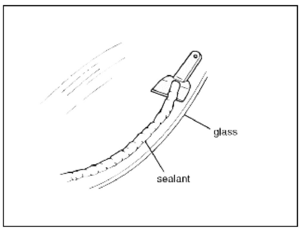 1. Remove the excess sealant from the glass with a window scraper.