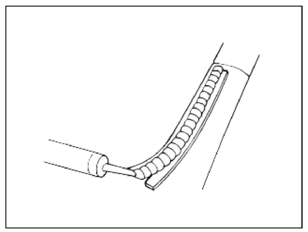 NOTE: When removing the sealant, pay attention not to scrape the paint on the body off. If the paint is scraped off, use a paint for repair.