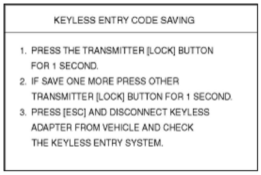 4. After removing the ignition key from key cylinder, push "ENTER" key to proceed to the next mode for code saving. Follow steps 1 to 3 and then code saving is completed.