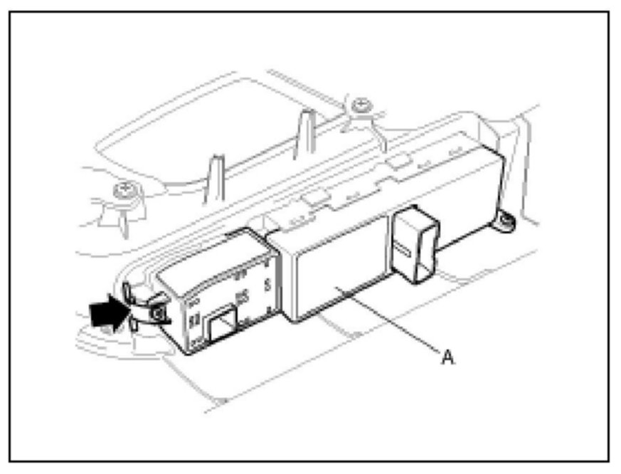 Remove the power window main switch (A) by pushing the mounting clip of the power window main switch.