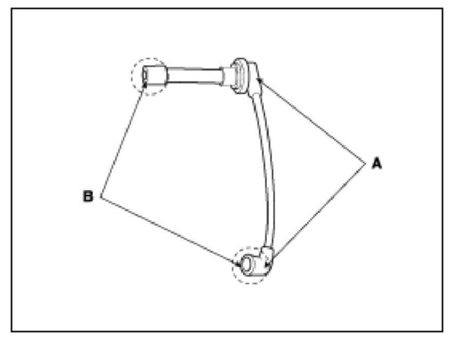 Check the condition of the spark plug cable terminals (B), if any terminal has surface corrosion, clean it off, and if it broken or distorted, replace the spark plug cable.