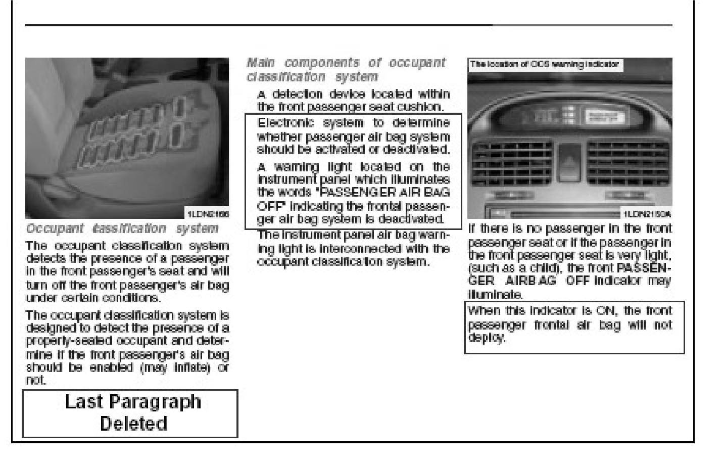 The previous Campaign 055, dated October 2005 identified how to update the Airbag Control Unit (ACU) in order to permit the side curtain airbag deployment at all times. This revision supplements the previous bulletin to confirm that the logic change will also permit the deployment of the seat-mounted side airbag at all times.