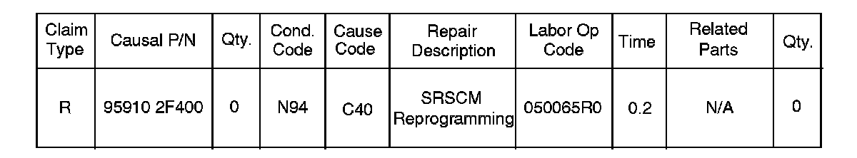 ^ ALREADY REPROGRAMMED or THIS ECM IS DIFFERENT TYPE": The reprogramming has already been done on vehicle or the ACU is not valid type for this reprogramming.