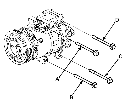 1. Ensure that the compressor bolts are installed in the correct location, then tighten in the following order : A->B->C->D
