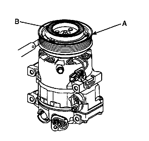 2. Check the pulley (B) bearing play and drag by rotating the pulley by hand. Replace the clutch set with a new one if it is noisy or has excessive play/drag.