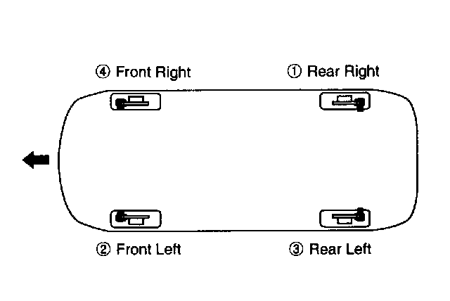 4. Repeat the procedure for wheel in the sequence shown below until air bubbles no longer appear in the fluid.