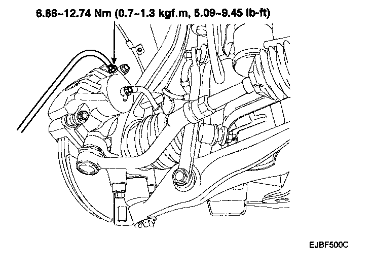 3. Loosen the right-rear brake bleed screw to allow air to escape from the system. Then tighten the bleed screw securely.