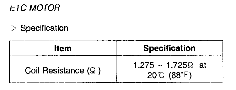 ETC Motor - Specification: