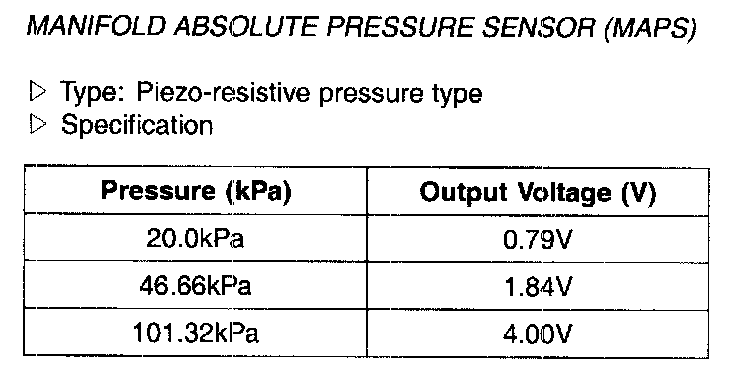 Manifold Absolute Pressure Sensor (MAPS) - Specification: