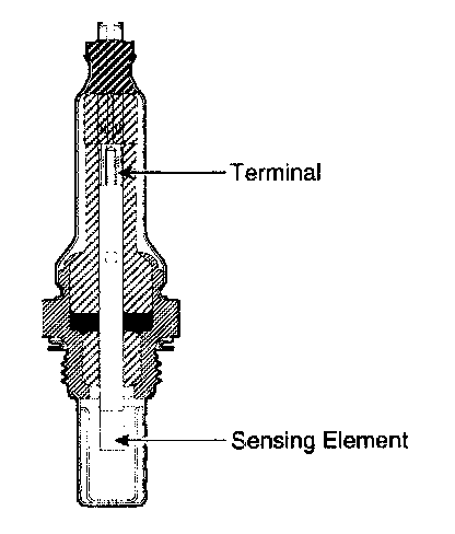 Heated Oxygen Sensor (HO2S) consist of zirconium and alumina and is installed on upstream arid downstream of the Manifold Catalyst Converter (MCC). After it compares oxygen consistency of the atmosphere with the exhaust gas, it transfers the oxygen consistency of the exhaust gas to the PCM. When A/F ratio is rich or lean, it generates approximately 1 V or 0 V respectively. In order that this sensor normally operates, the temperature of the sensor tip is higher than 370 °C (698 °F). So it has a heater which is controlled by the PCM duty signal. When the exhaust gas temperature is lower than the specified value, the heater warms the sensor tip.