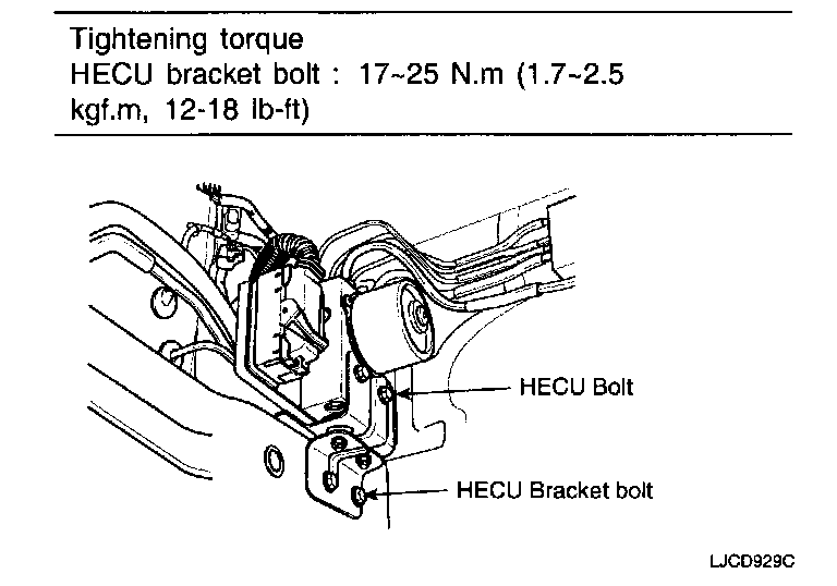 1. Tighten HECU bracket bolt.