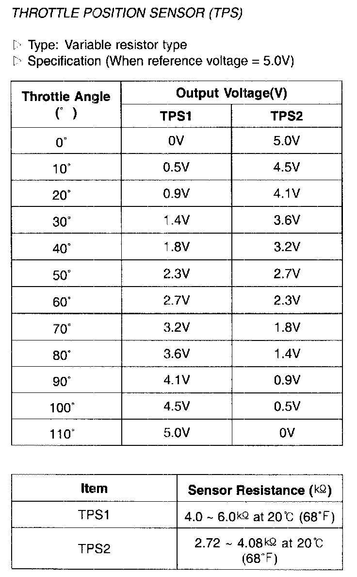 Throttle Position Sensor (TPS) - Specification: