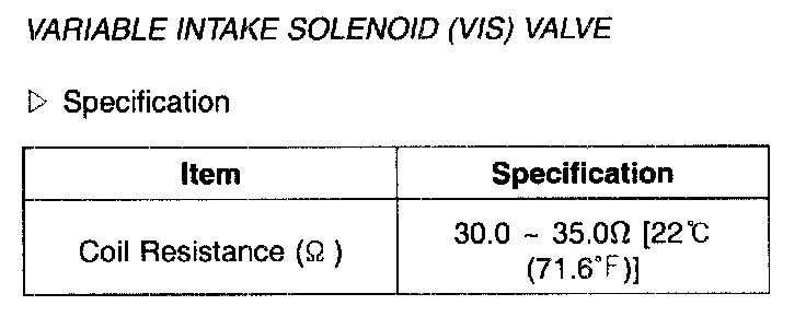 Variable Intake Solenoid (VIS) Valve - Specification: