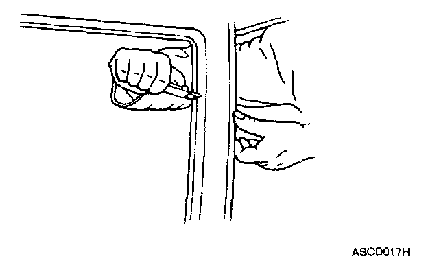 CAUTION: Lower both front door windows and leave them in that condition until the vehicle can be put back into service. If the vehicle were completely closed, quickly closing a door could break the seal.