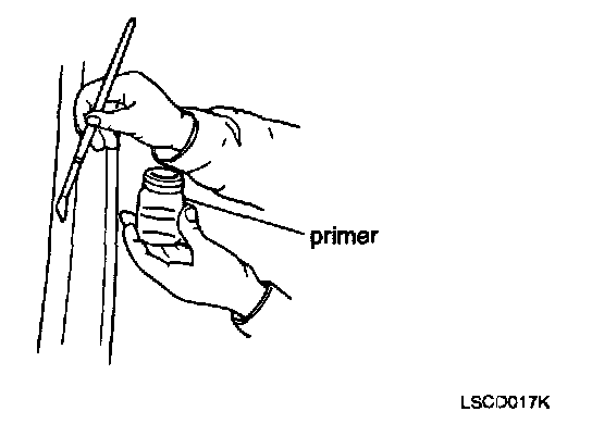4. Prime an area approximately 20 mm (3/4 inch) wide around the complete perimeter of the glass.