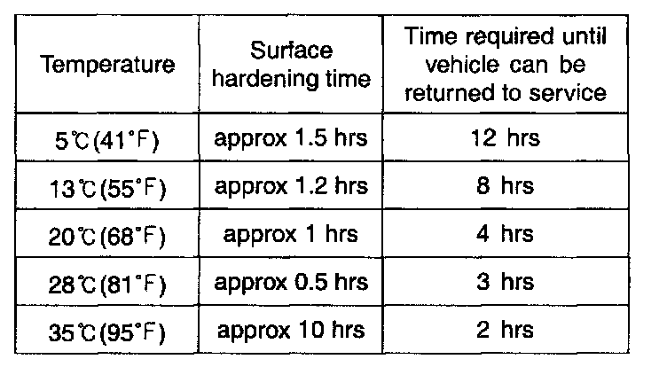 NOTE: The following cure times may be critical. Attempting to replace a windshield in ambient temperature over 35 °C (95 °F) should be avoided before completing the application.