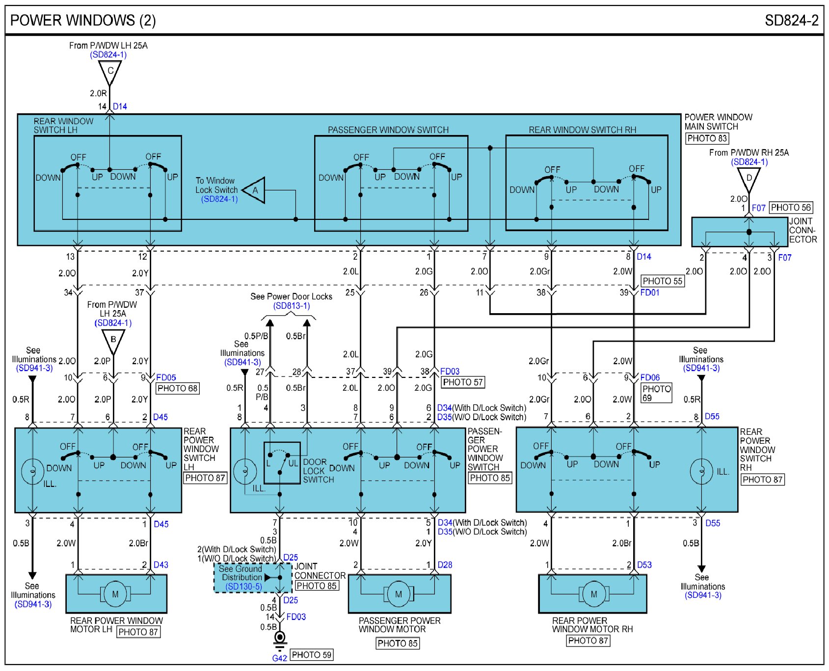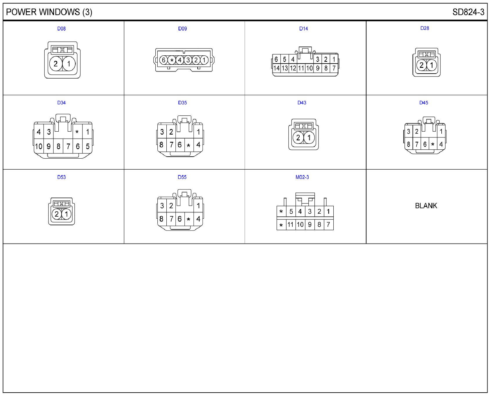 Power Windows Connector Pin Outs: