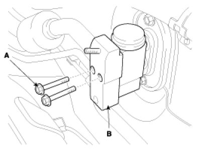 5. Remove the bolts (A) and the expansion valve (B) from the evaporator core.