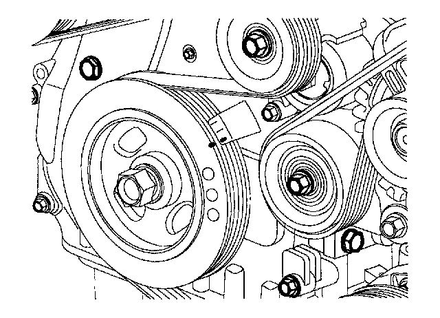 NOTE: Tensioner pulley bolt is left - handed screw