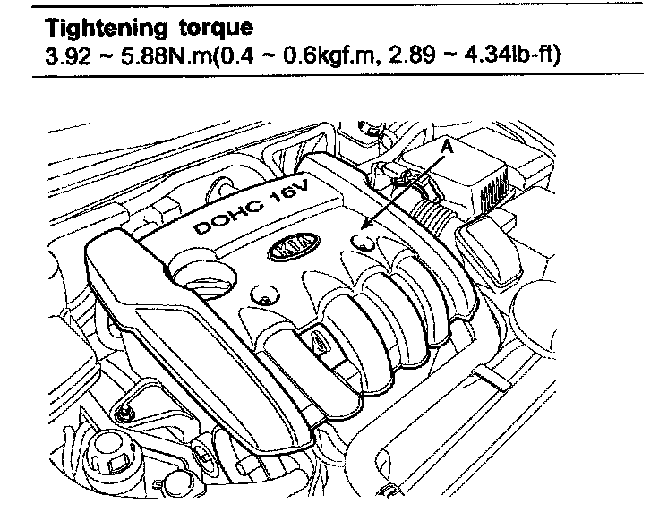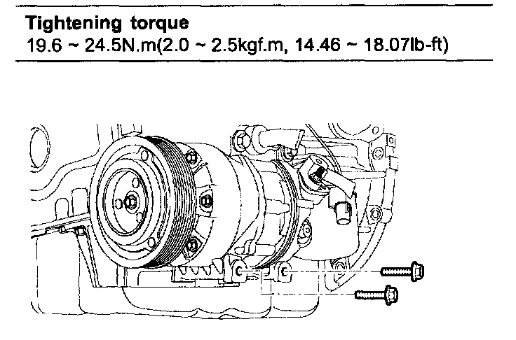 Tightening torque 7.84 - 9.8 Nm (0.8 - 1.0 kgf.m, 5.78 - 7.23 ft. lbs.)