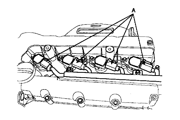 12. Disconnect the ignition coil connector (A).