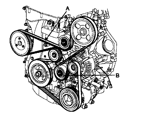 8. Remove the drive belt tensioner (B).