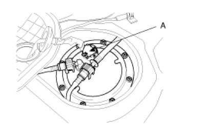 (3) Disconnect the fuel pump connector (A).
