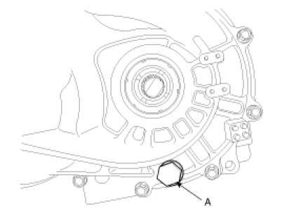 2. Drain the transaxle oil after loosening the drain plug(A).