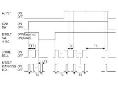 (4) If unfastened S/Belt state continues after 60sec-TIME COUNT from ALT"L" ON, the Warning Lamp flashes and Warning Bell sounds 11 times in 30sec-cycle(6sec ON/ 24sec OFF) after 30sec from ALT"L" ON.