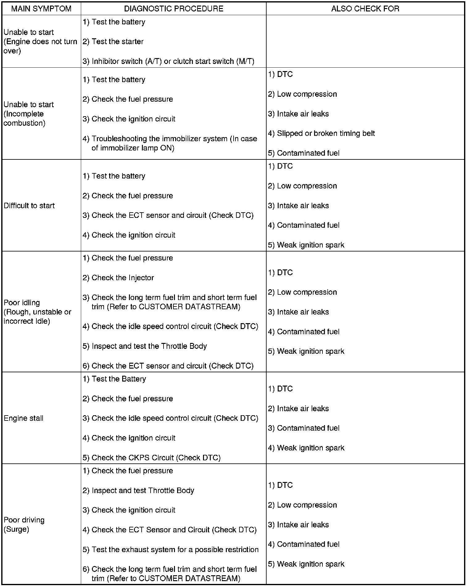SYMPTOM TROUBLESHOOTING GUIDE CHART