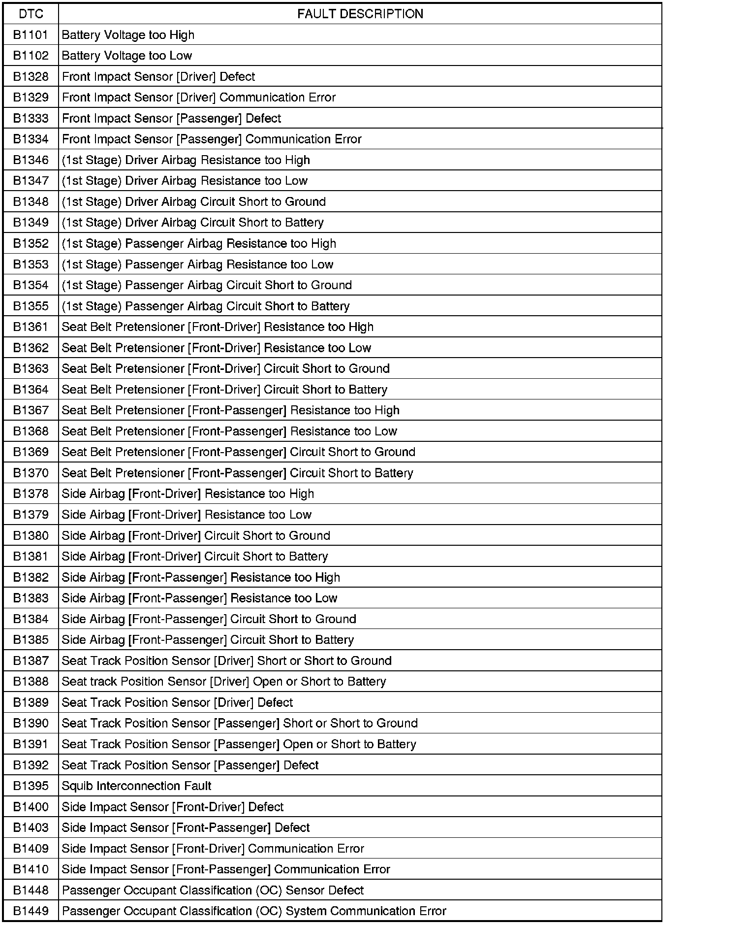 DIAGNOSTIC TROUBLE CODES (DTC)