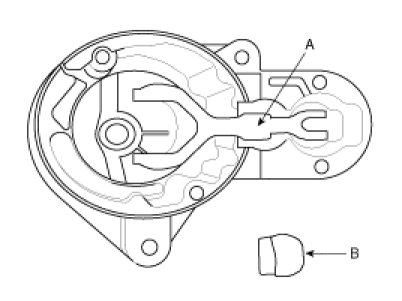 4. Remove the rear bracket (A) and brush holder assembly (B).