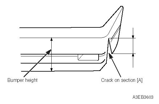 3. If a crack on bumper section is [A] is less than 4 in. (100 mm) (less than half of the bumper height).