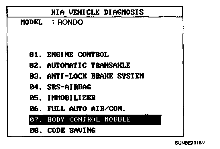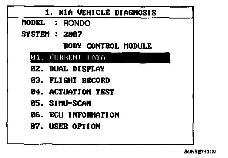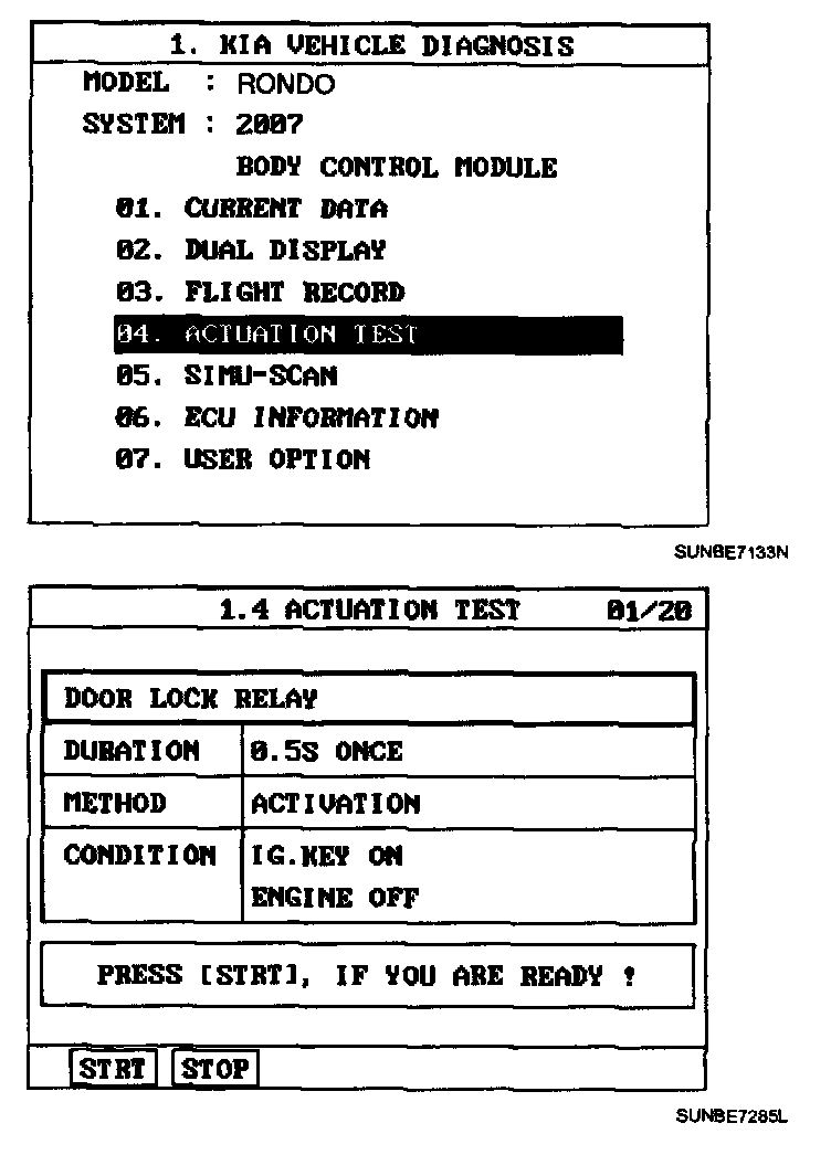 2. Select model and "Body Control Module" menu, when you inspect the door-lock switch module whether faulty or not.