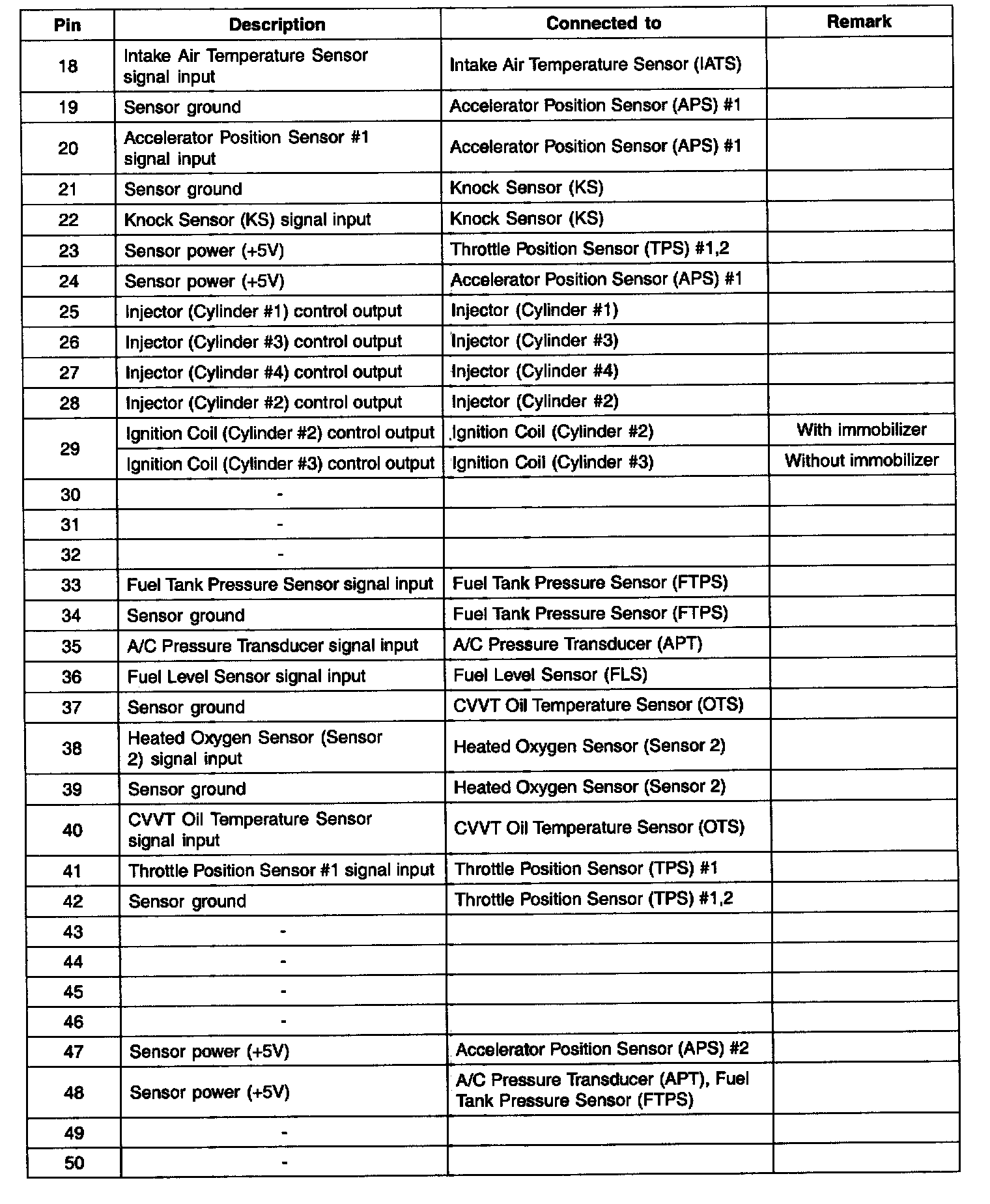 ECM Terminal Input/Output Signal - C301 (Part 2):
