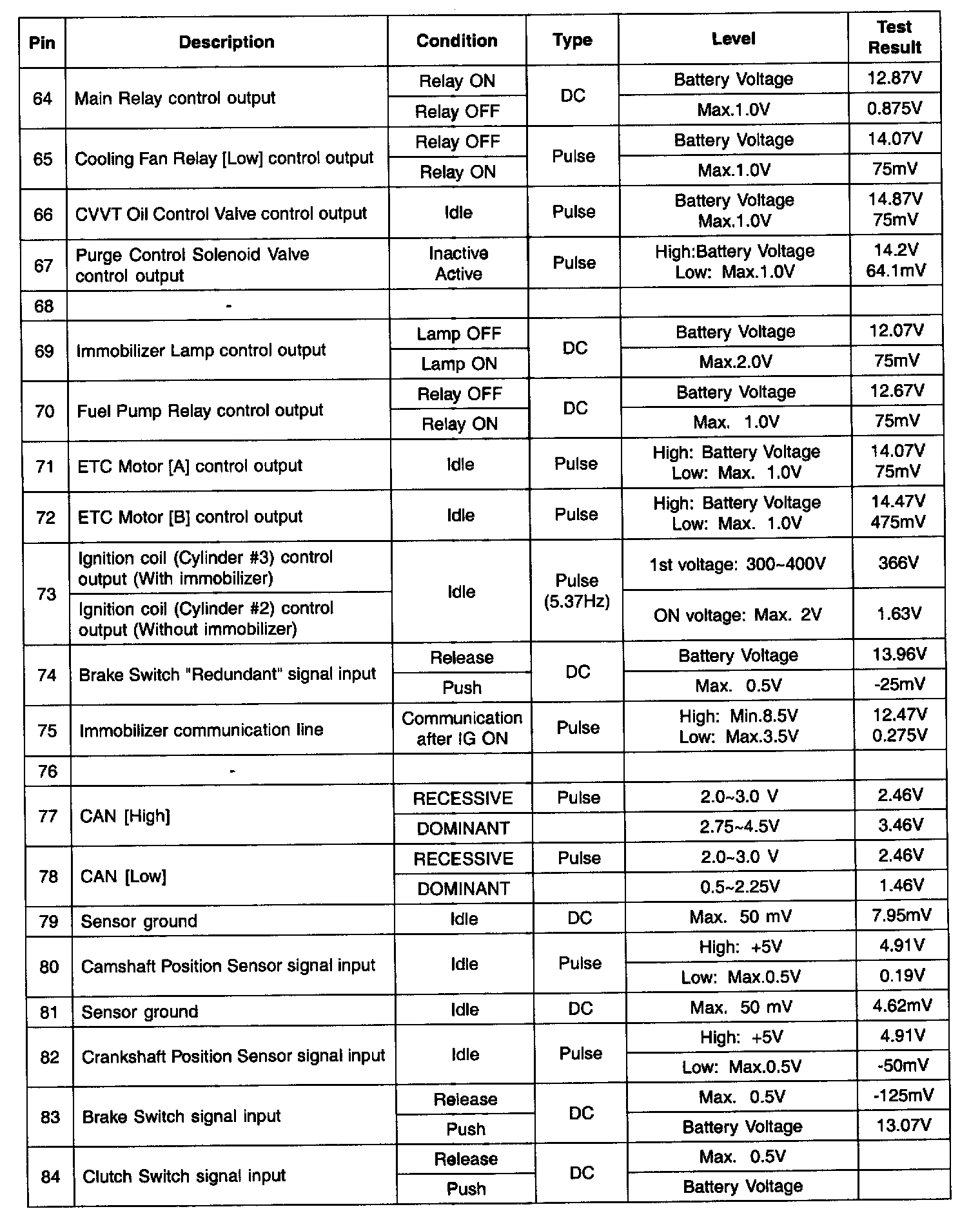 ECM TERMINAL INPUT/OUTPUT SIGNAL - CONNECTOR [C301]