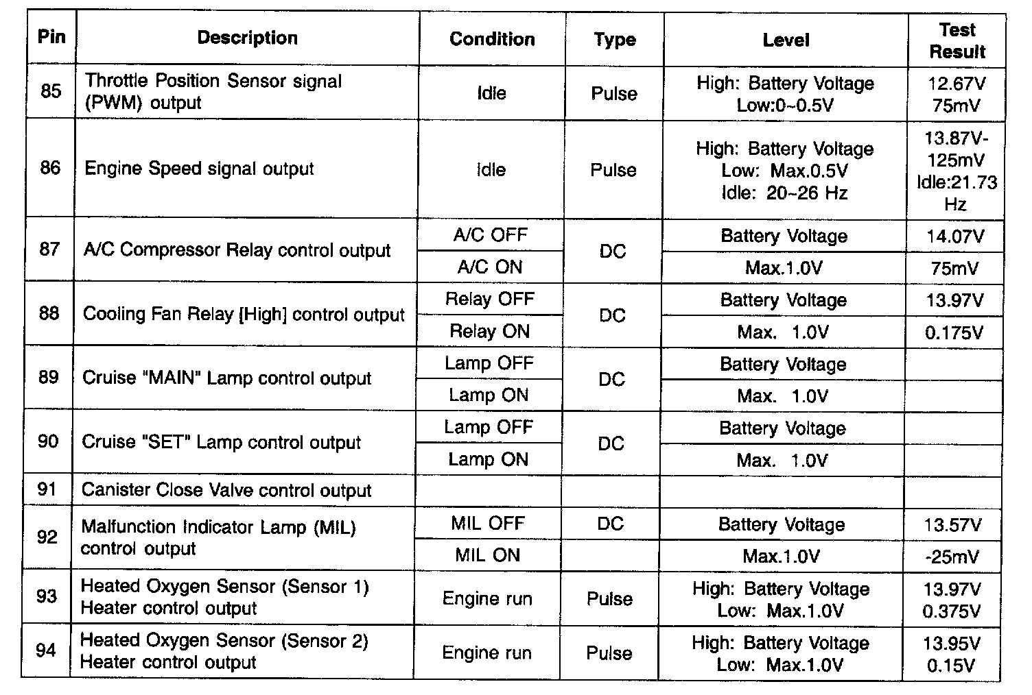 ECM Terminal Input/Output Signal - C301 (Part 5):