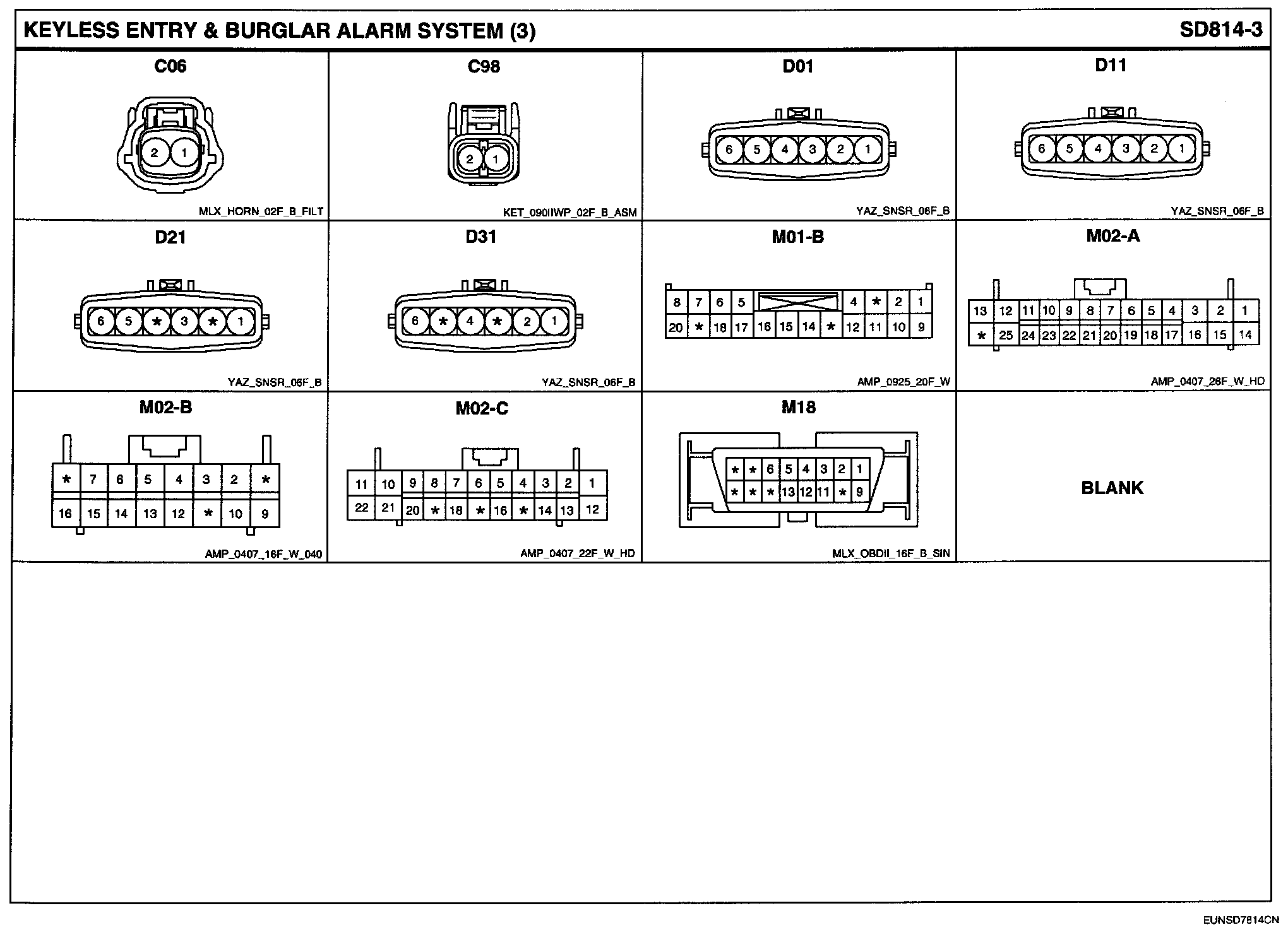 Keyless Entry & Burglar Alarm System Connector Pin Outs: