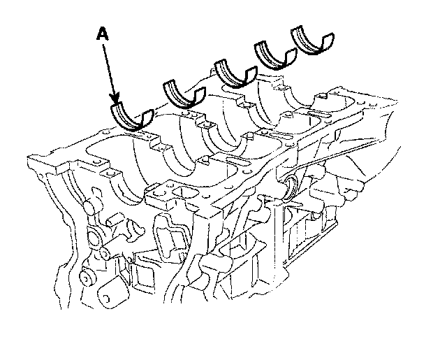 1) Align the bearing claw with the claw groove of the cylinder block, push in the 5 upper bearings(A).