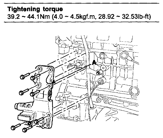 19. Install tensioner assembly integrated bracket(A).