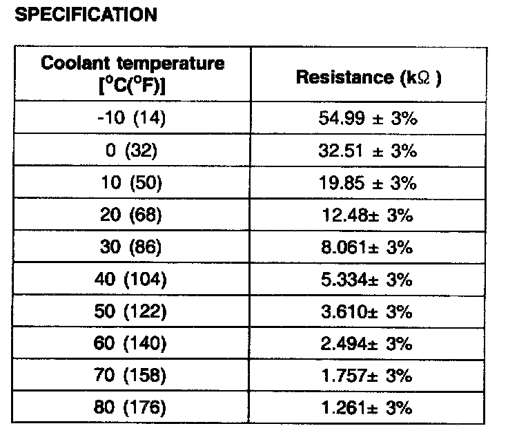3. If the measured resistance is not specification, substitute with a known-good water temperature sensor and check for proper operation.
