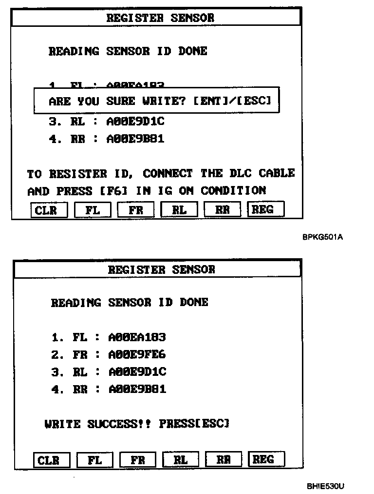 1. Read the four sensor's ids starting with sensor 1 (1 normally front left, 2 front right, 3 rear left, 4 rear right).
